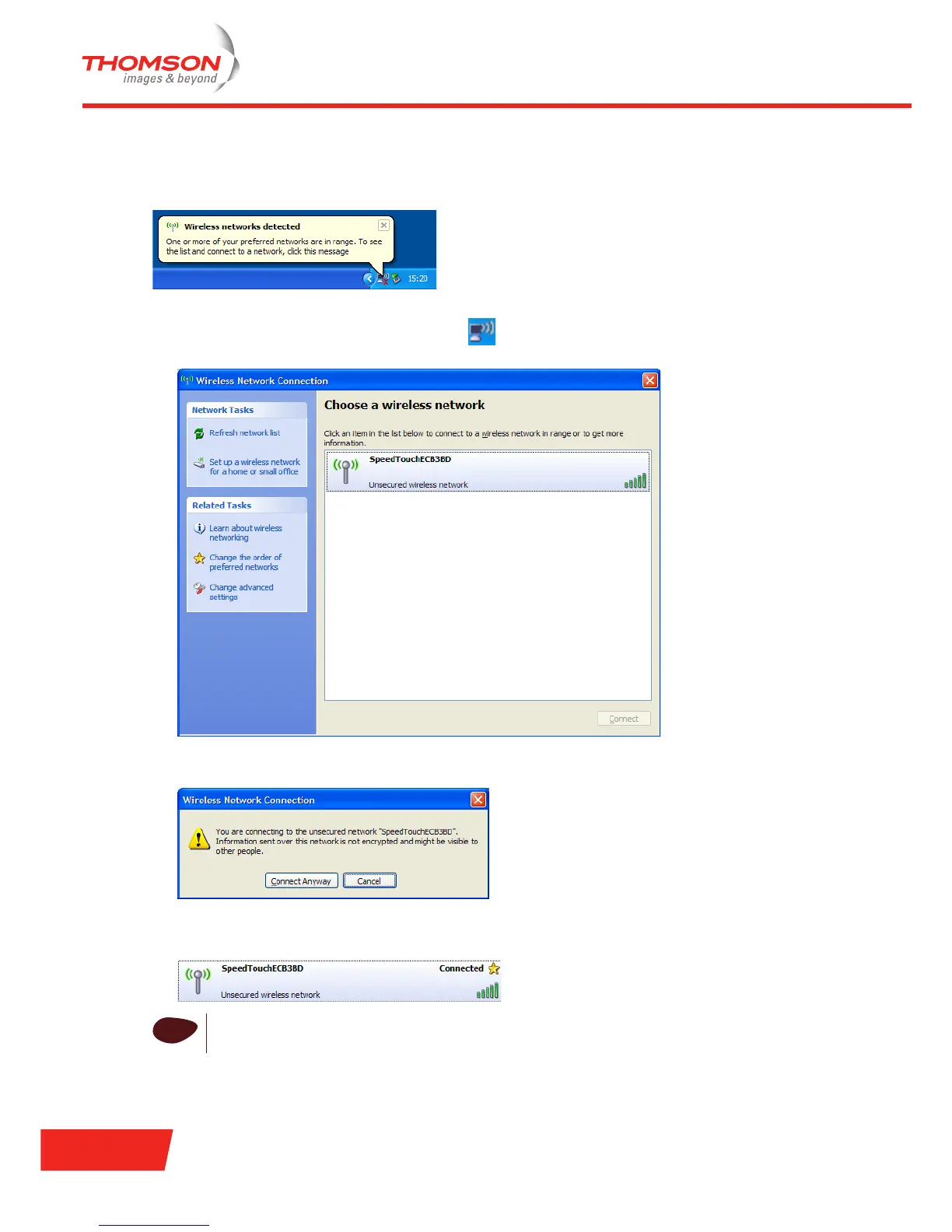 The example below shows how the Thomson Gateway wireless network is presented by a Windows XP