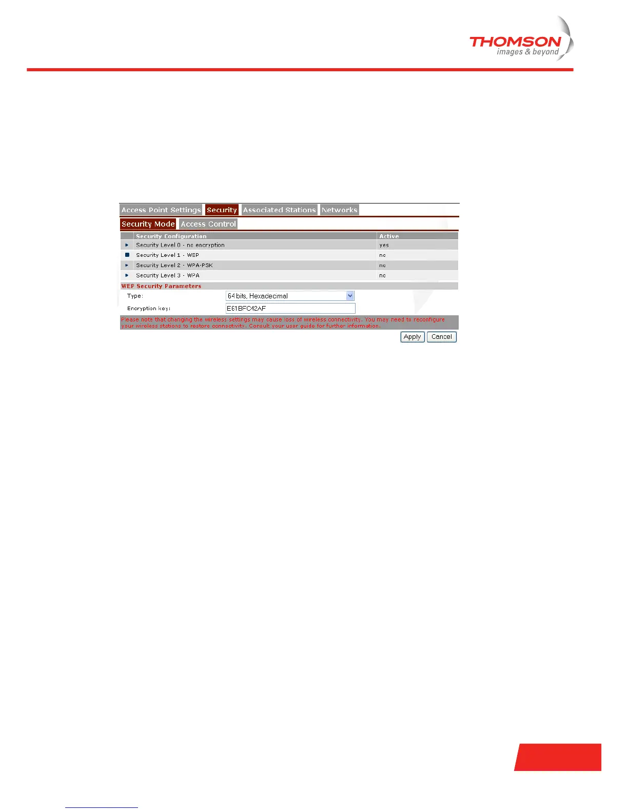 The Thomson Gateway supports WPA-PSK which has 3 improvements on WEP: