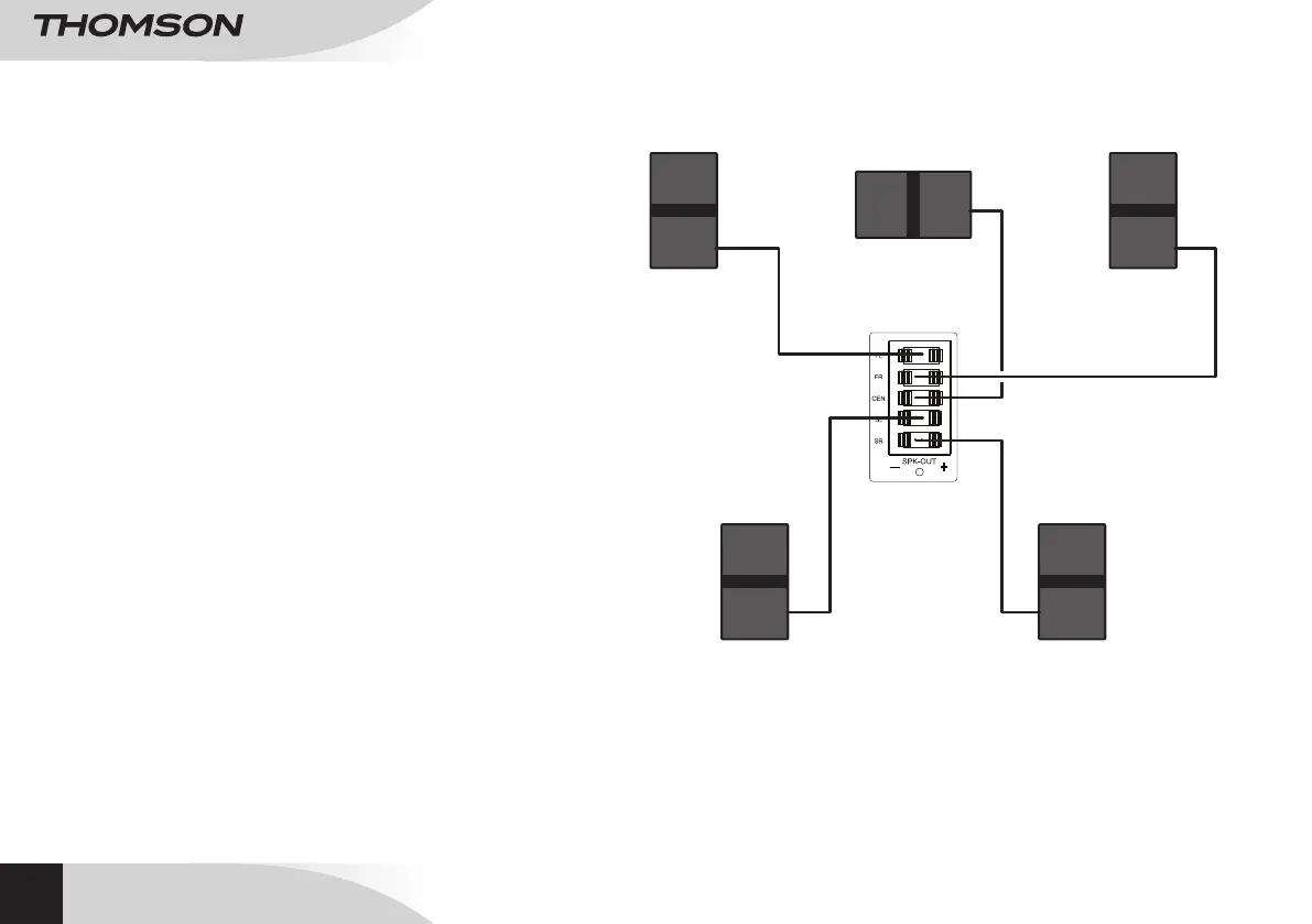 • Connect the four satellite speakers to the device on inputs FR, FL, SR and SL
