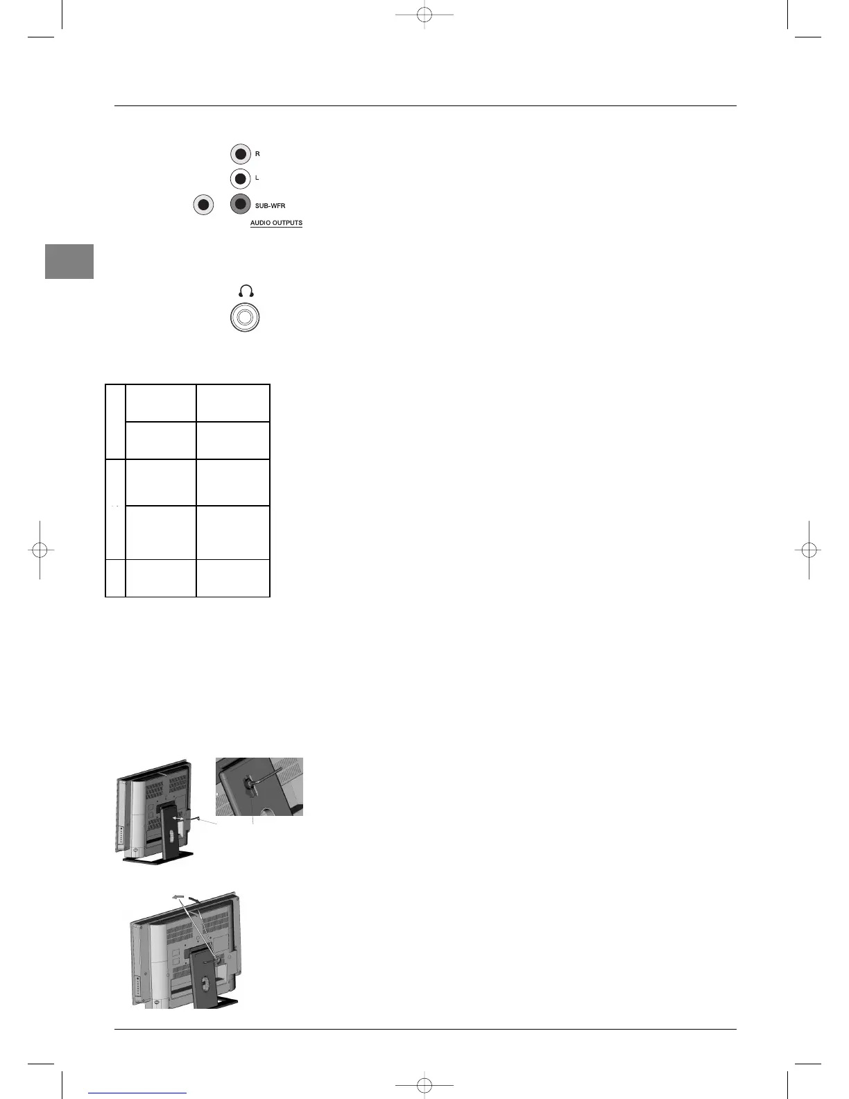 Use the relevant socket on the right side of the TV set to connect headphones or stereo