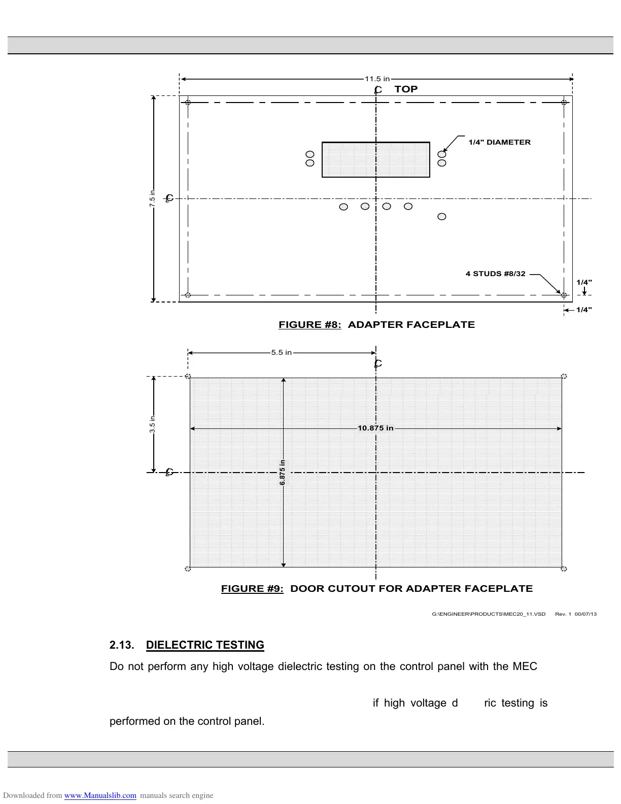 Do not perform any high voltage dielectric testing on the control panel with the MEC 2