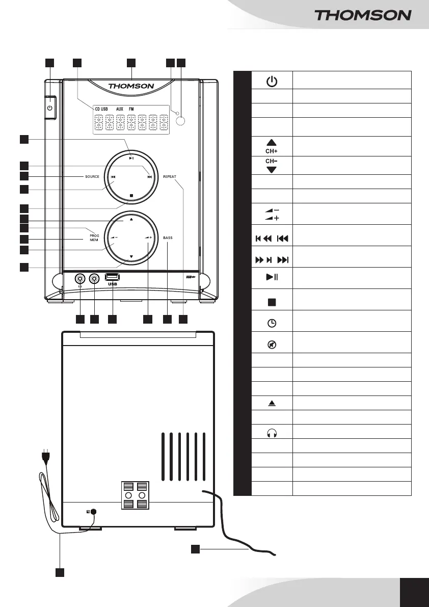 Mode selector (TUNER / CD / USB/