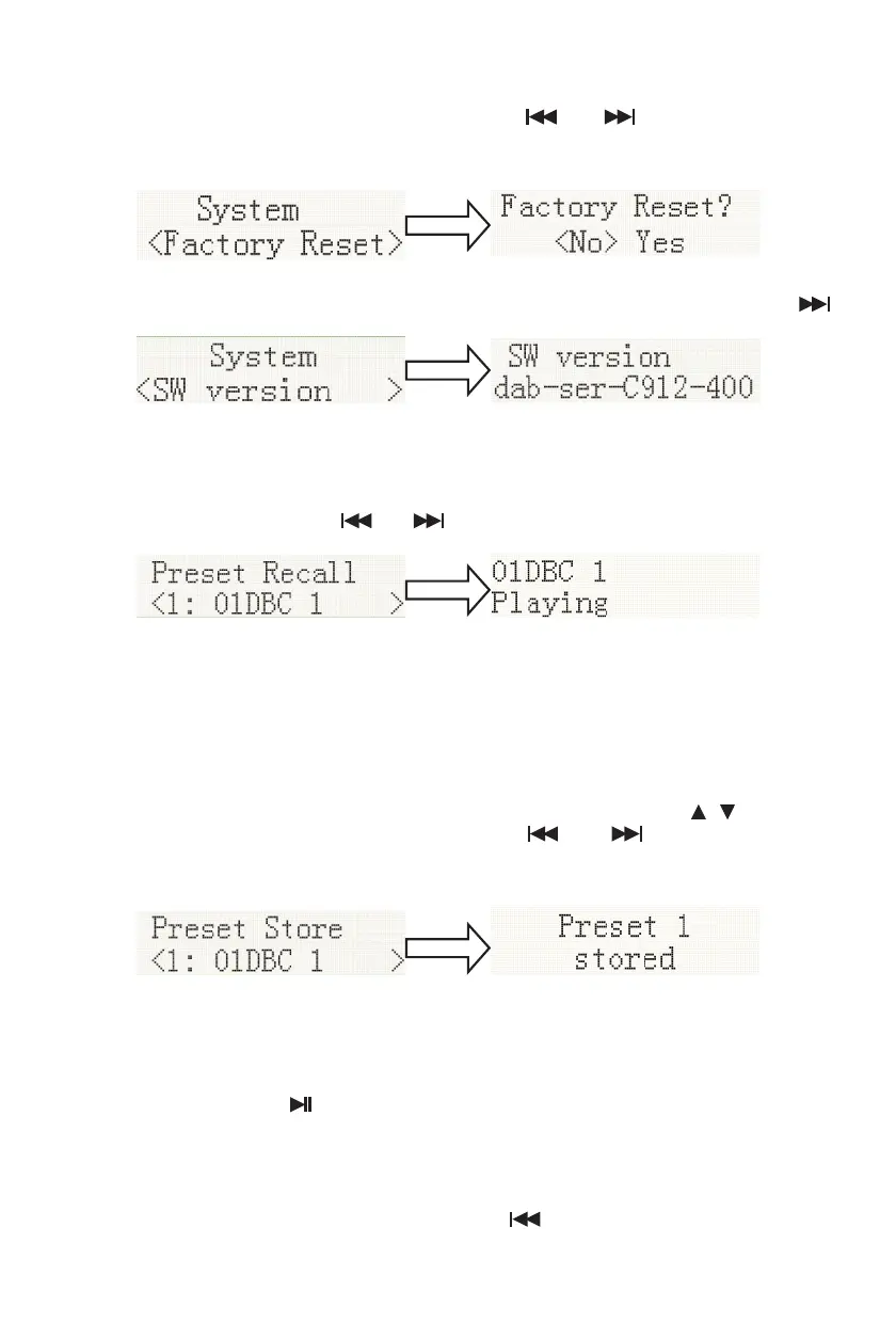 Drücken Sie im DAB-Modus oder , um „Preset recall“ auszuwählen, drücken Sie dann