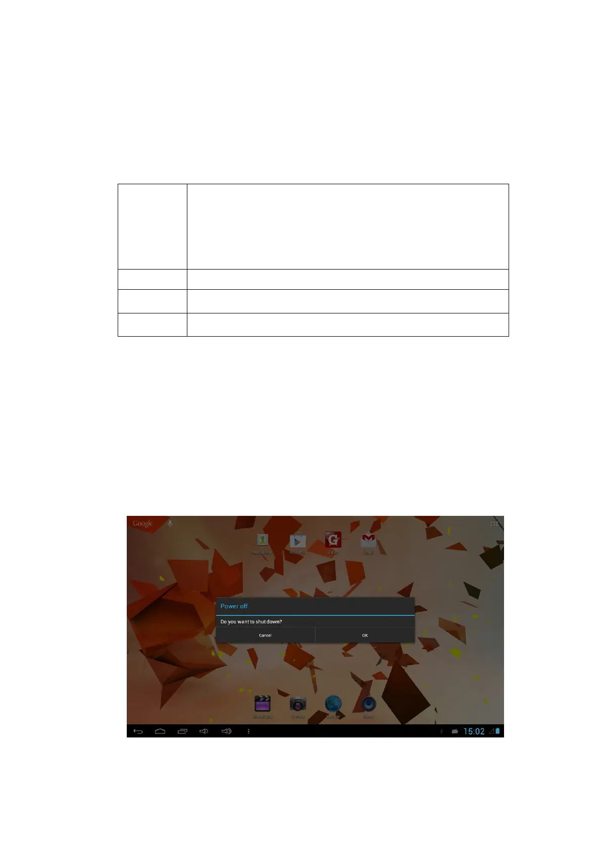1. Press the power key for 2 seconds, the shutdown option will pop up.