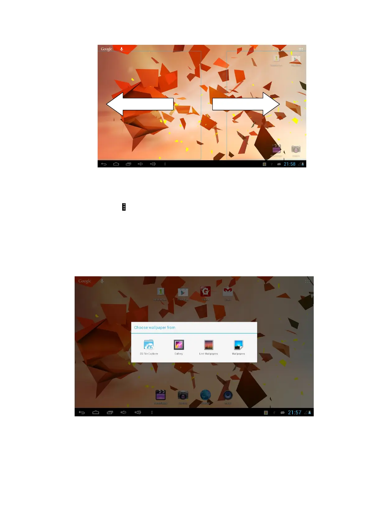 1. Tap the icon in the homepage interface to pop up the submenu Wallpaper,