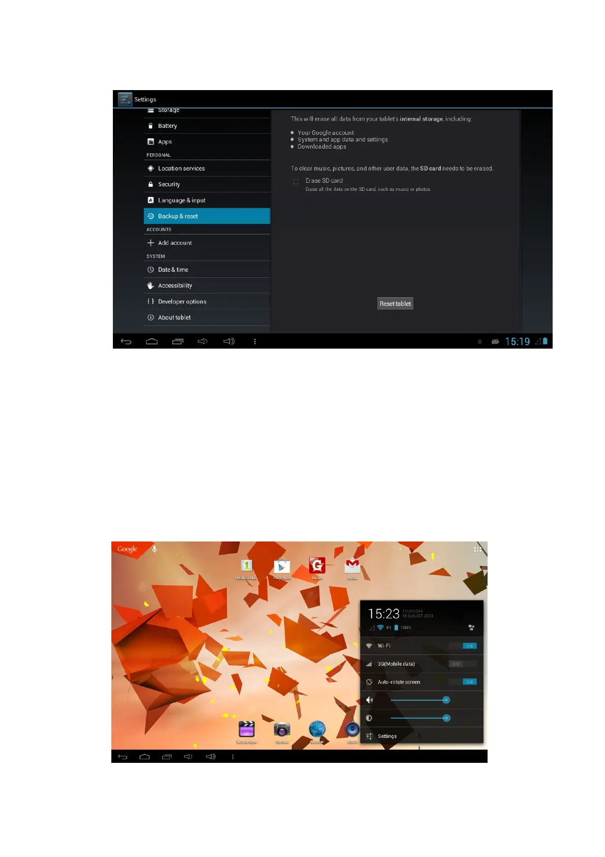 A quick menu will appear with basic settings such as WIFI / VOLUME / BRIGHTNESS
