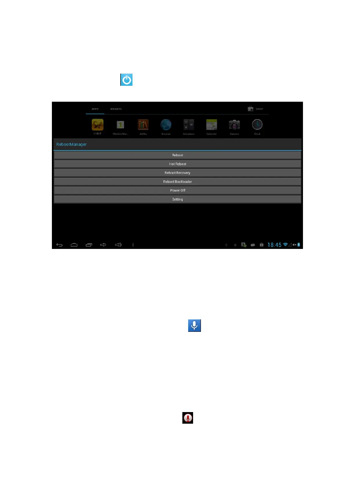 Click and select the from the Apps, you can select Reboot, Recovery or Power