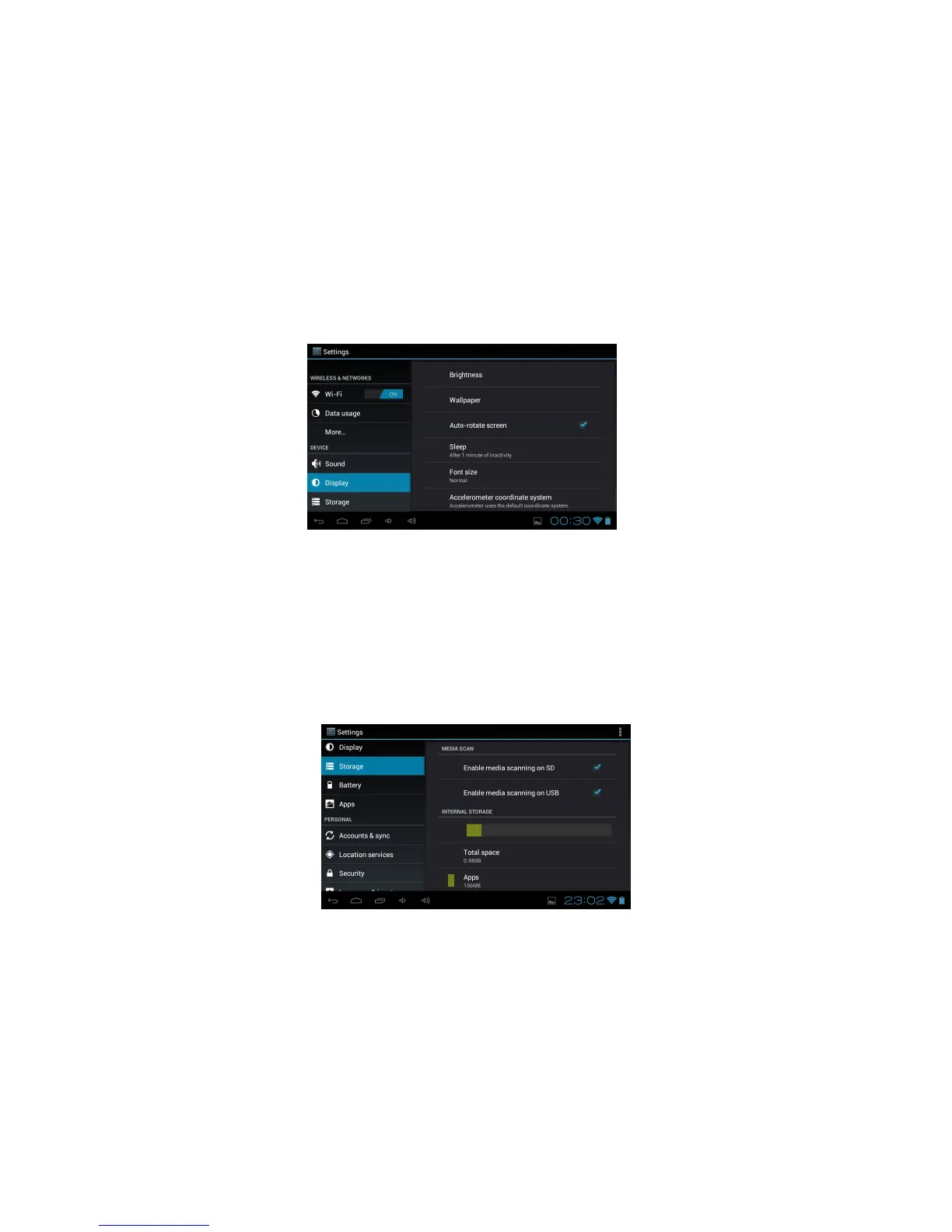 Sleep: Set Sleep time options between 15 seconds and 30 minutes or never sleep.