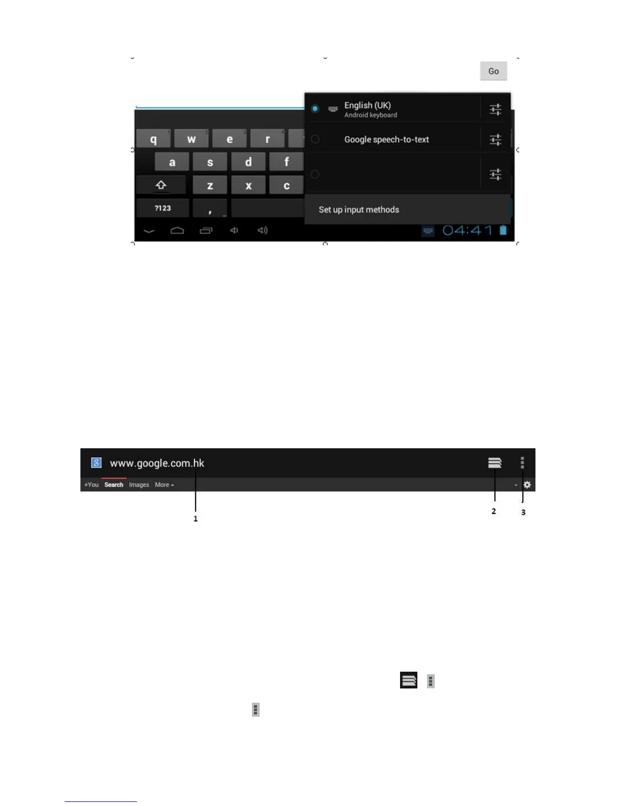 2. To access a specific webpage, select the URL field, enter the web address, and then select Go.