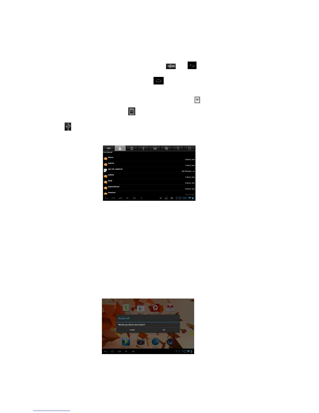 memory of you tablet, the second icon shows the files in your extend Micro SD card if it is insert; The