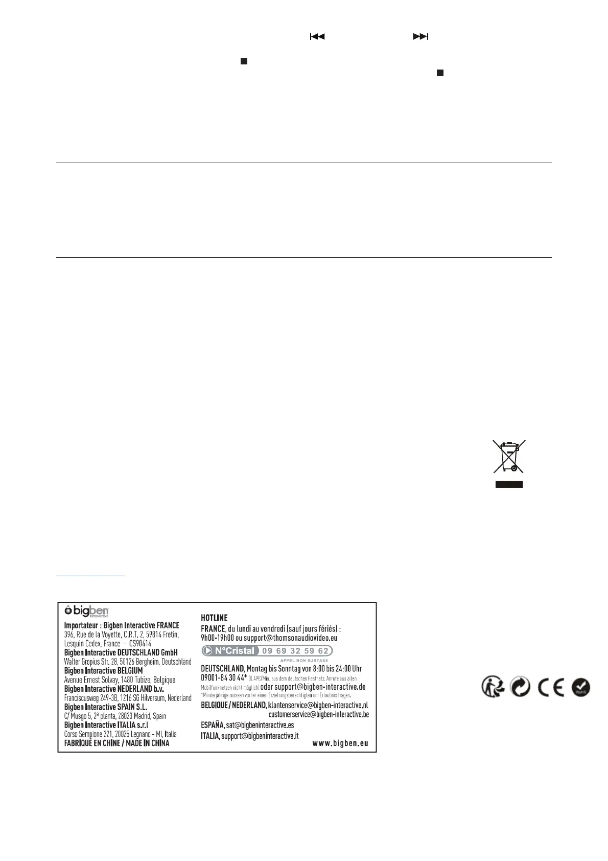 morceaux programmés, l’unité passe au morceau programmé précédent ou suivant.