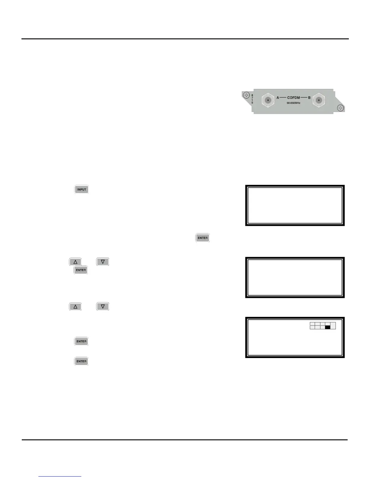 (U.S.) or any COFDM Terrestrial Broadcast (DVB-T, European) applications. Only one input may be