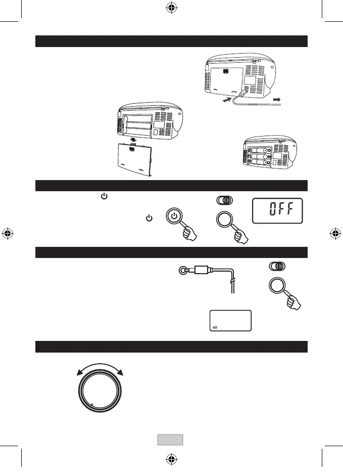 r permuter entre les modes audio RADIO, AUX, CASSETTE et CD, appuyer