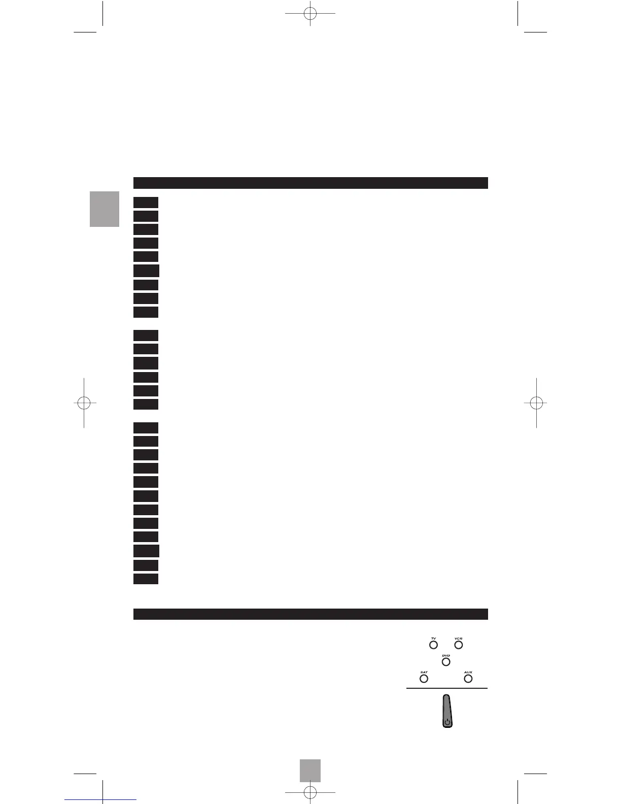 TV, VCR, SAT, DVD, AUX). I tasti VCR, SAT, DVD, AUX