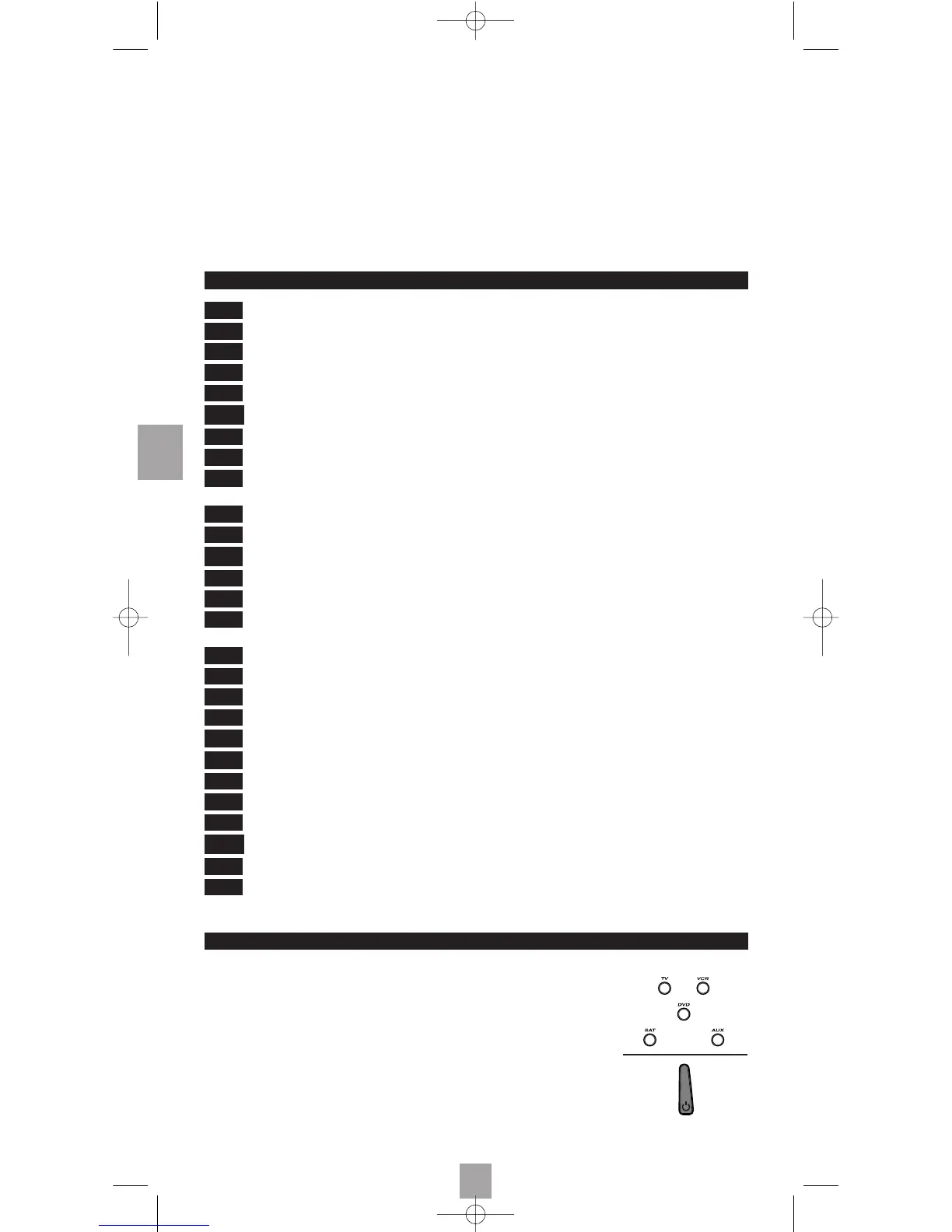 TV, VCR, SAT, DVD, AUX). As teclas VCR, SAT, DVD, AUX também