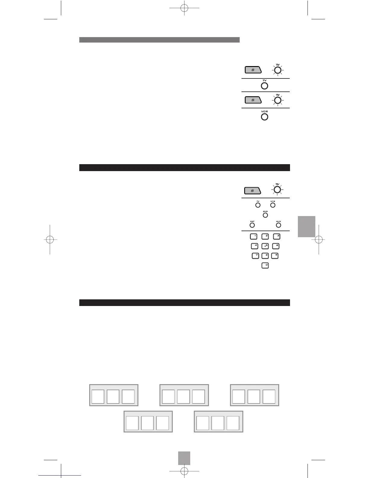 3. Tryck ner knappen TV (15), följ därefter en av programmeringsmetoderna A, B, C