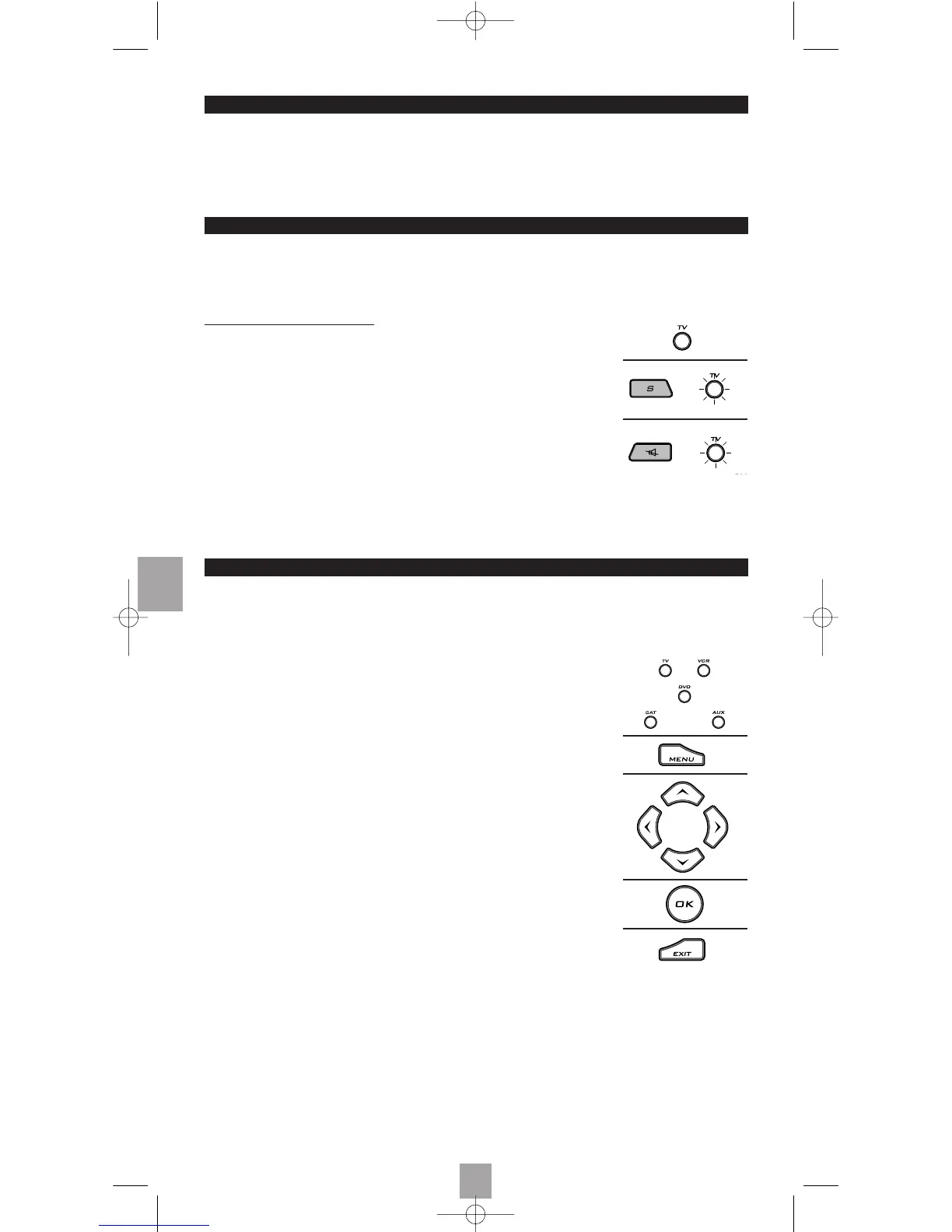 2. Håll knappen S (6) nertryckt ända tills det senast valda läget TV) blinkar 3 gånger