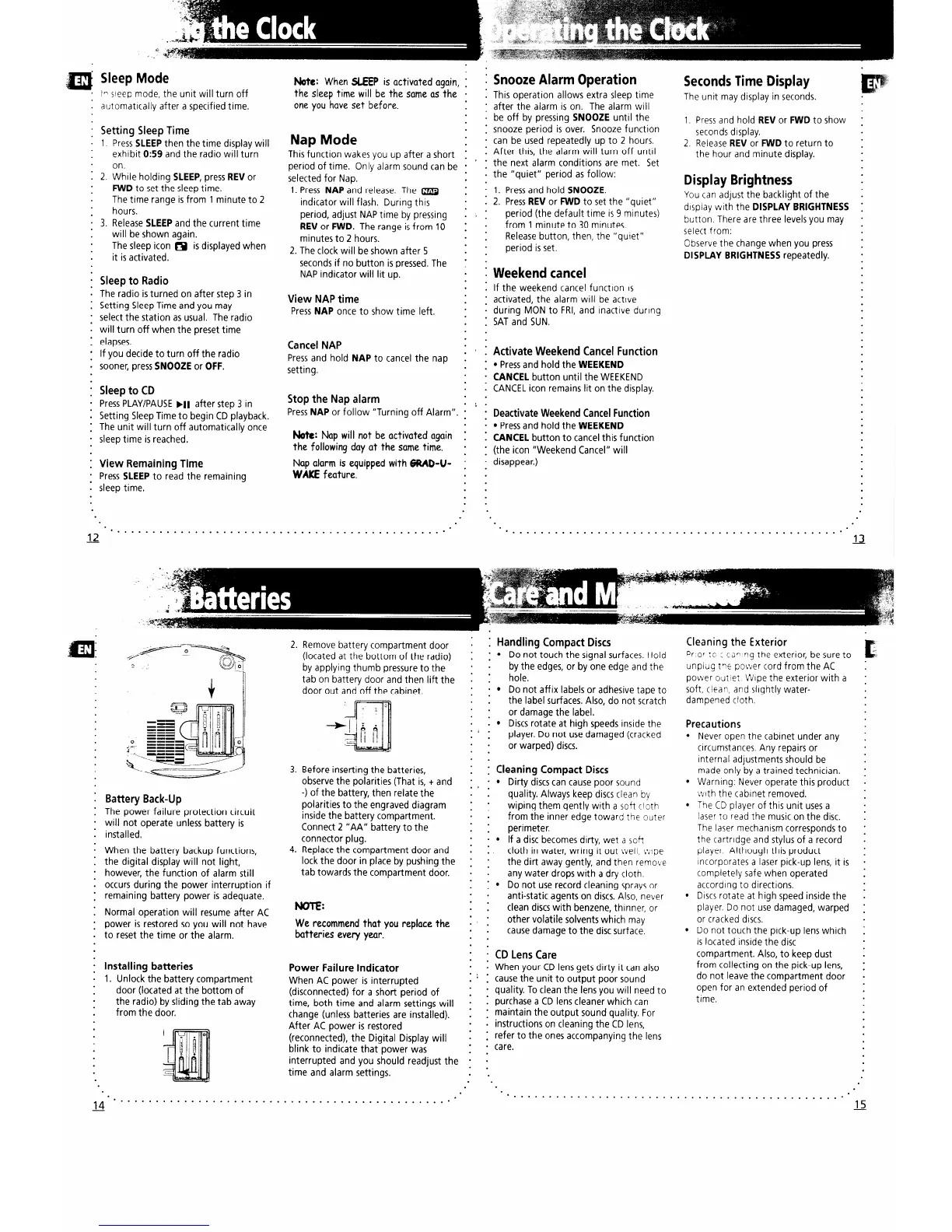 THOMSON RR520U - Operating the Clock; Snooze Alarm Operation; Weekend cancel; Activate Weekend Cancel Function