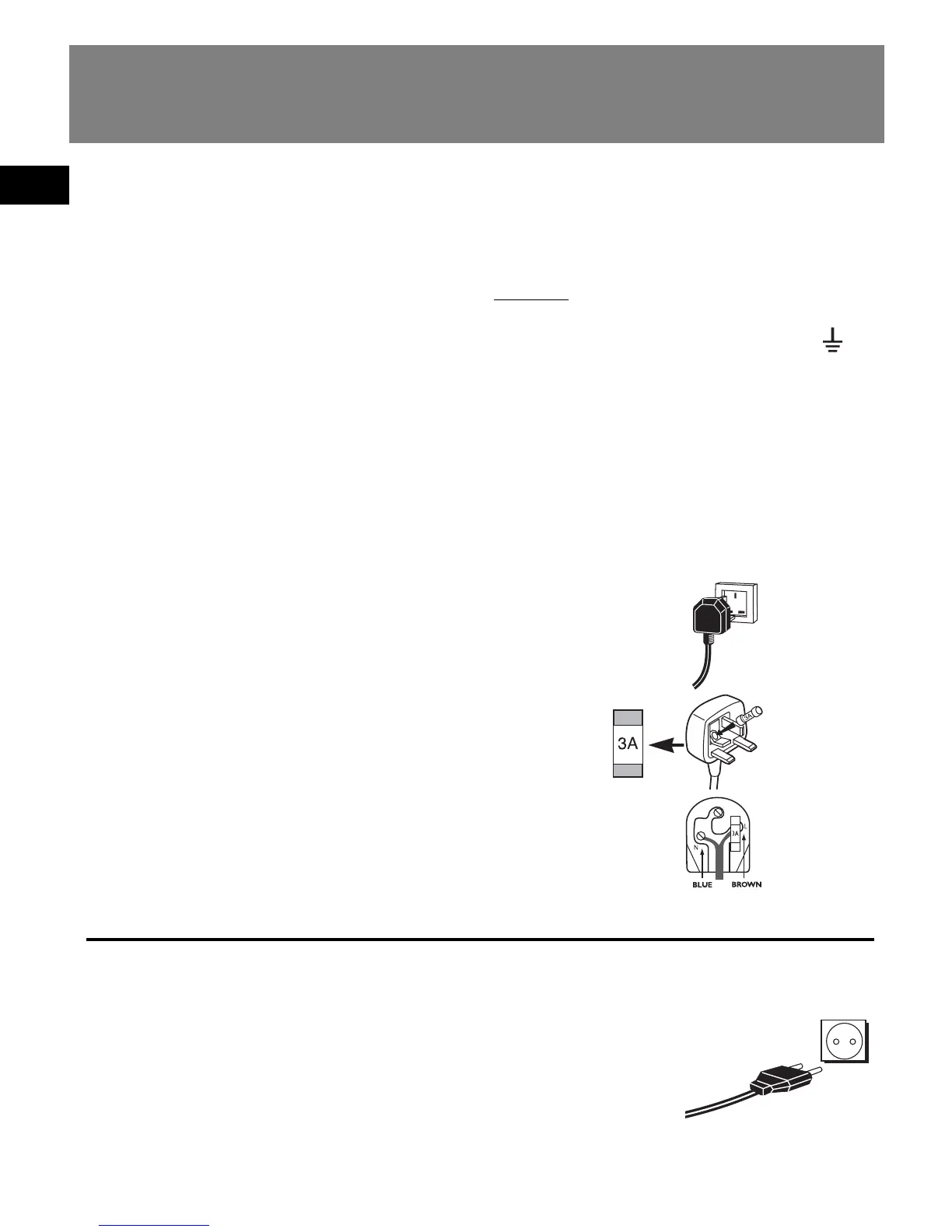 Note: The mains lead of the set is fitted