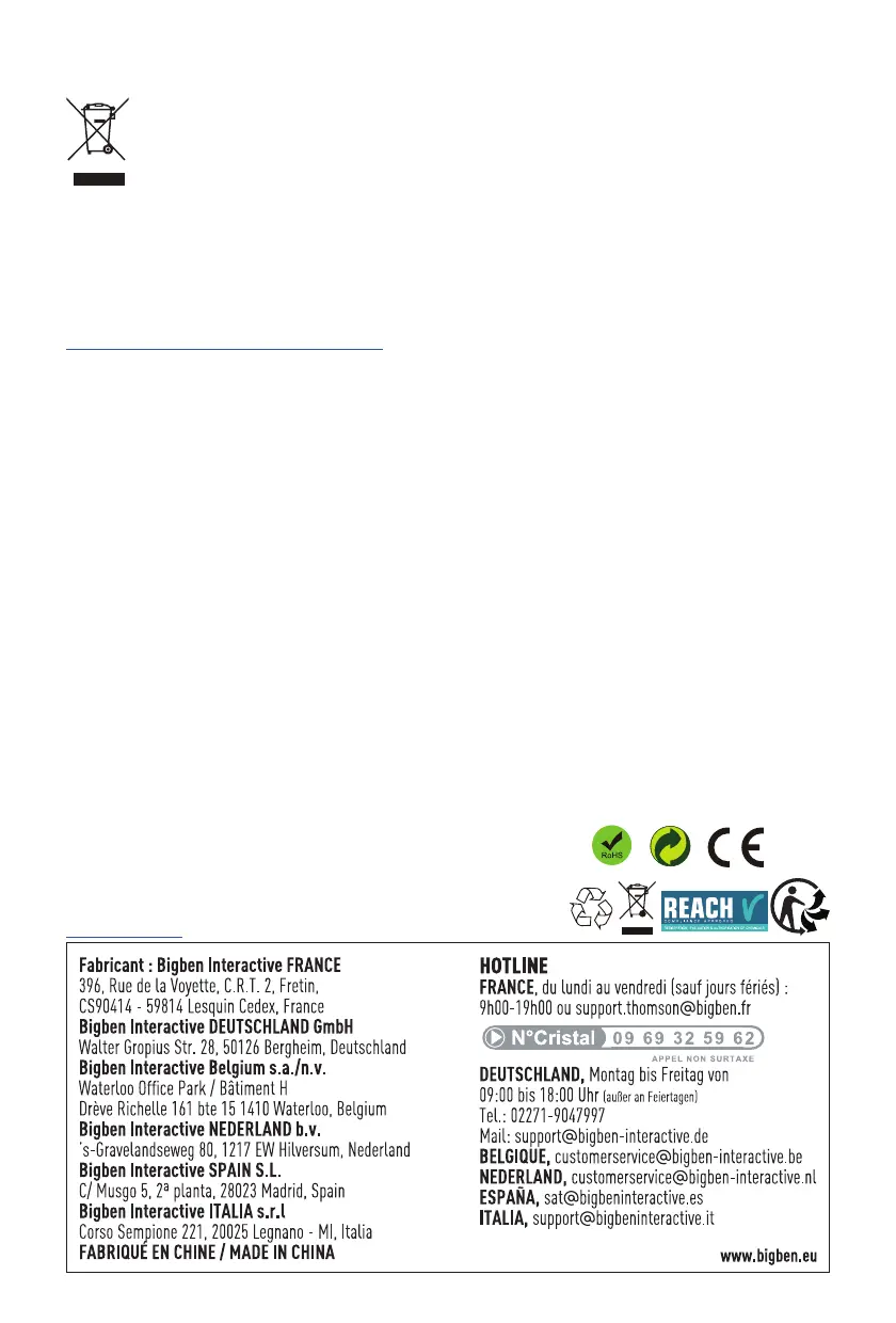 Hiermit erklärt Bigben Interactive, dass das Produkt RT225DAB der Richtlinie 2014/53/EU entspricht.