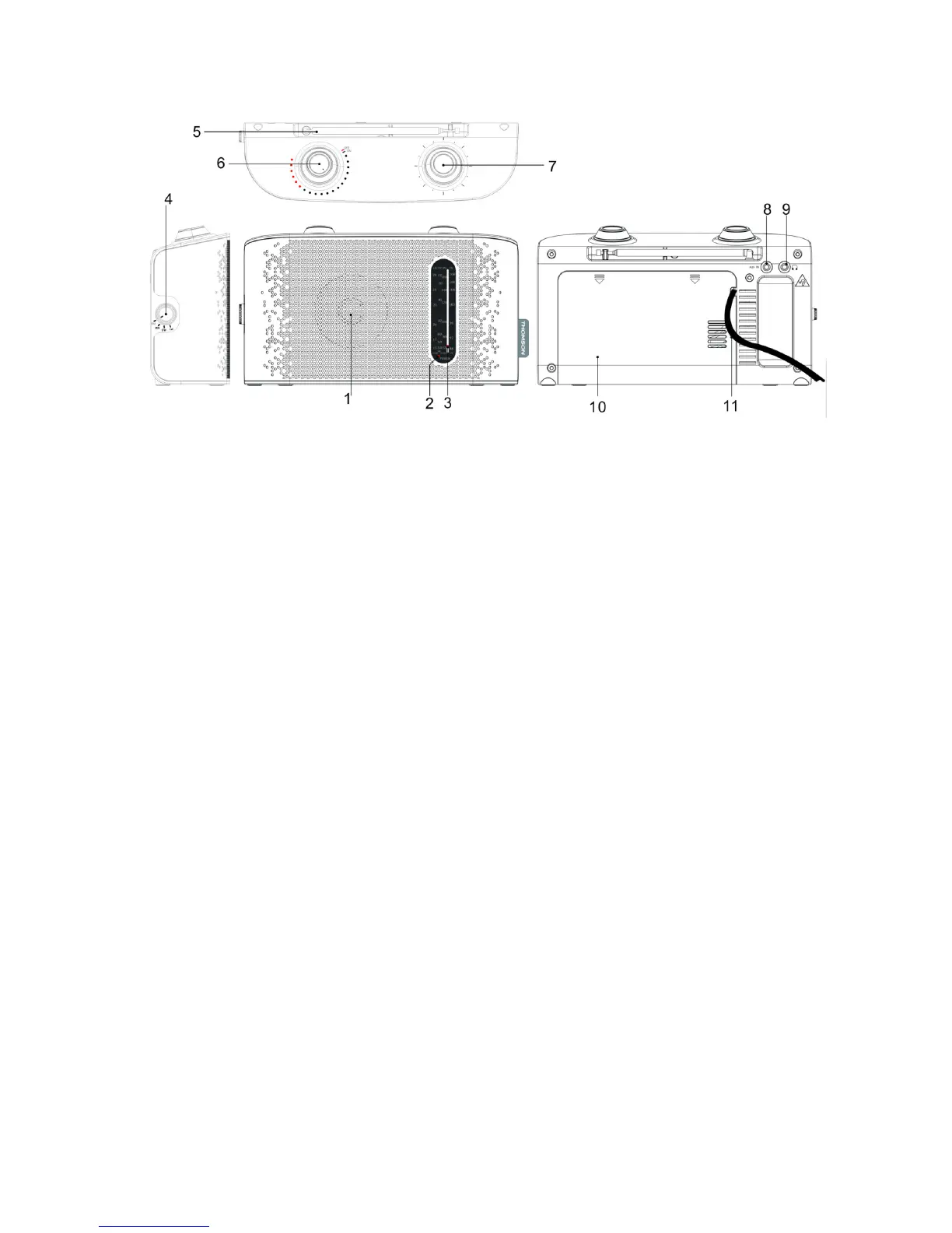 4. Frequenzbereichswähler 4 Frequenzbereiche — FM/SW/MW/LW