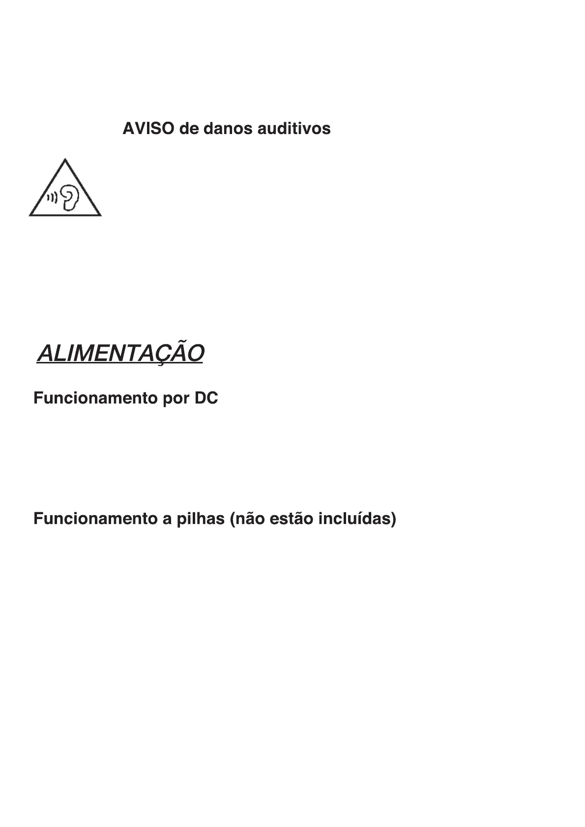 ou C (de preferência, alcalinas) com a polaridade correta, conforme
