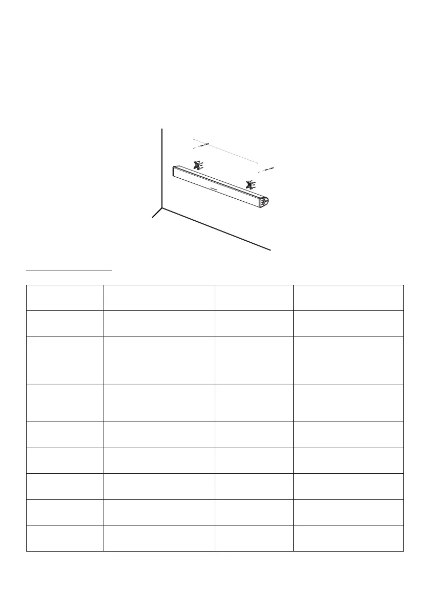 4. Avvitare le 2 viti al muro, quindi ssare la sound bar e assicurarsi che sia abile.