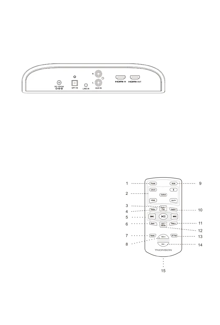 2. LINE IN/BT/OPTICAL/HDMI/AUX IN: Selecione o