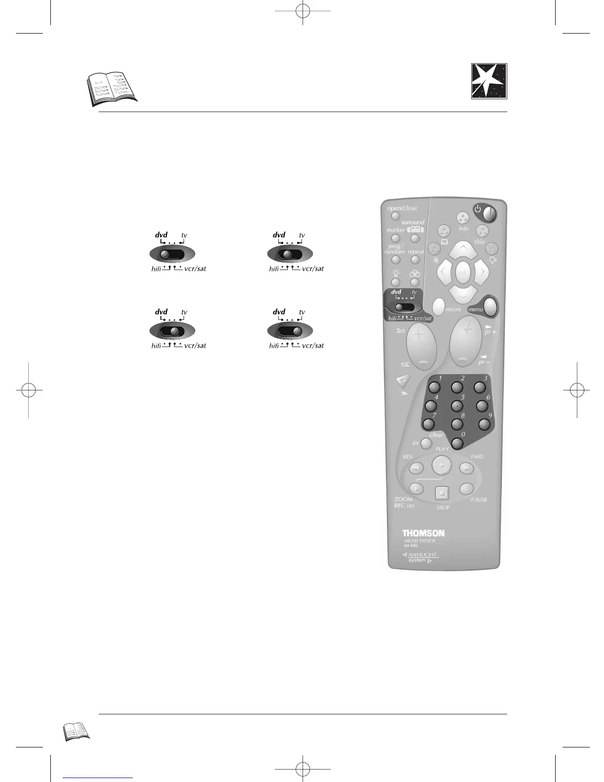 1 Place the switch dvd • hifi • vcr/sat • tv on the device you