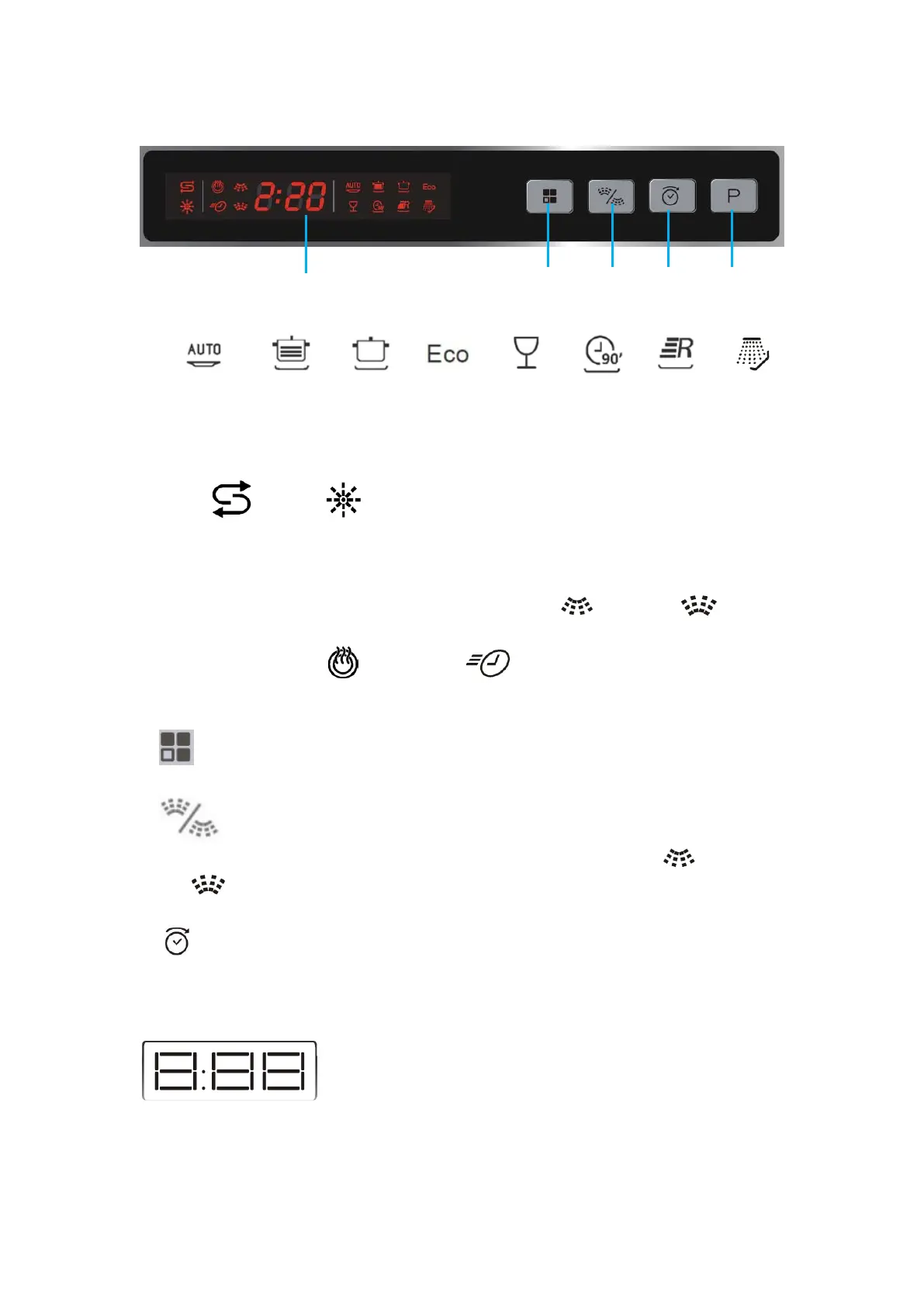 To show washing programme time and indicator lights: