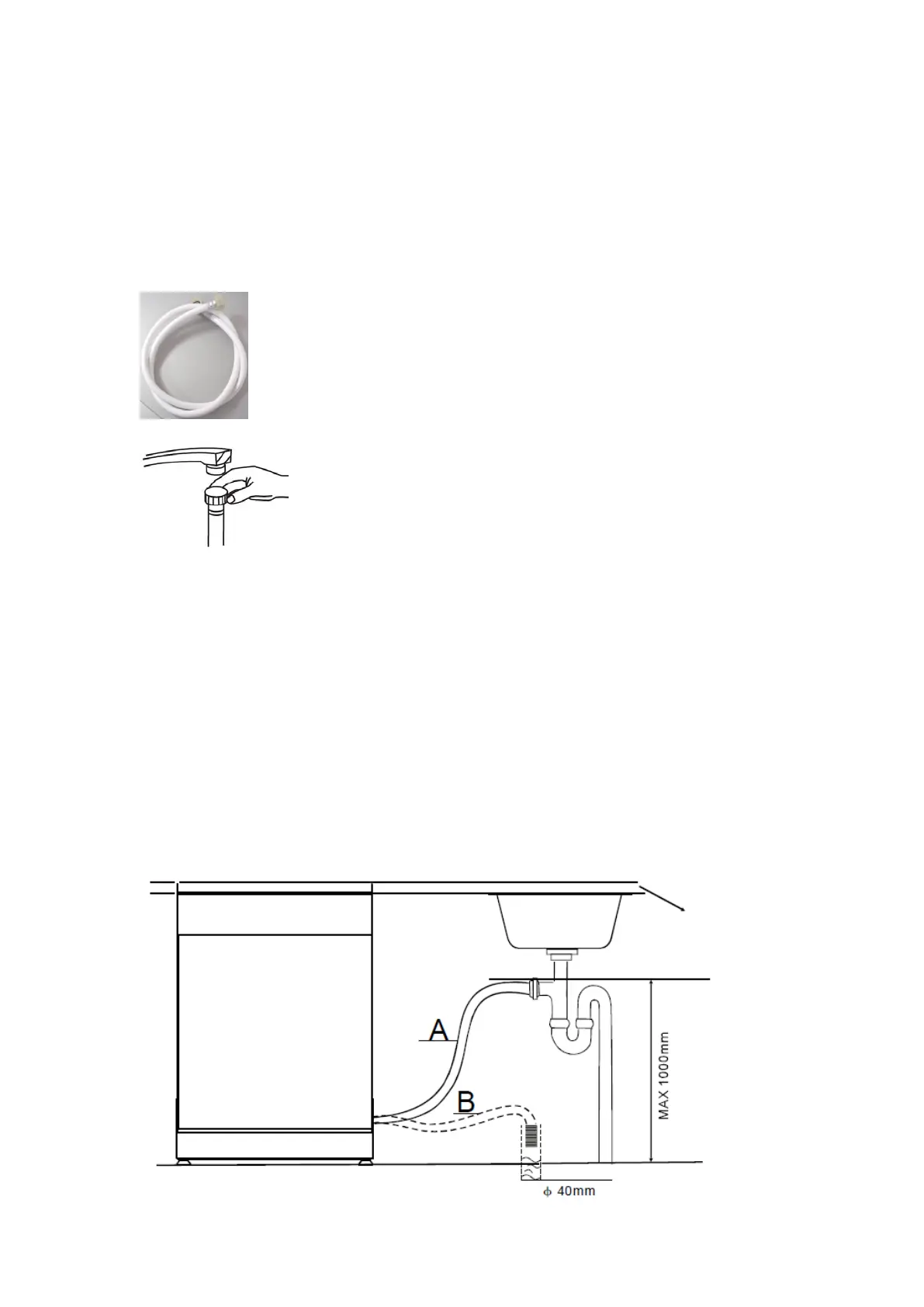 hoogte vanaf de onderkant van de vaatwasser. Het uiteinde van de slang mag niet in water