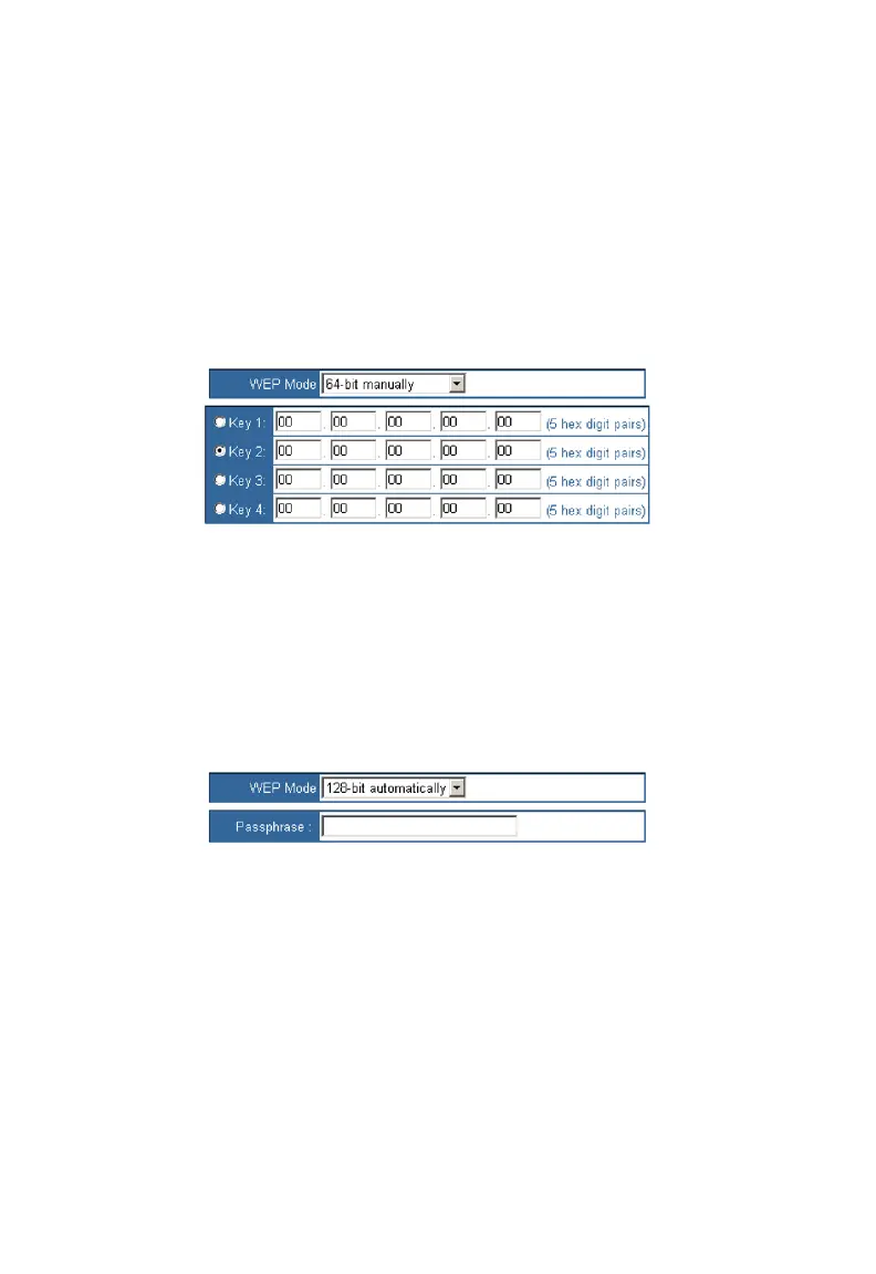 128-bit 26 hex digits, manual or automatic. Higher encryption levels offer