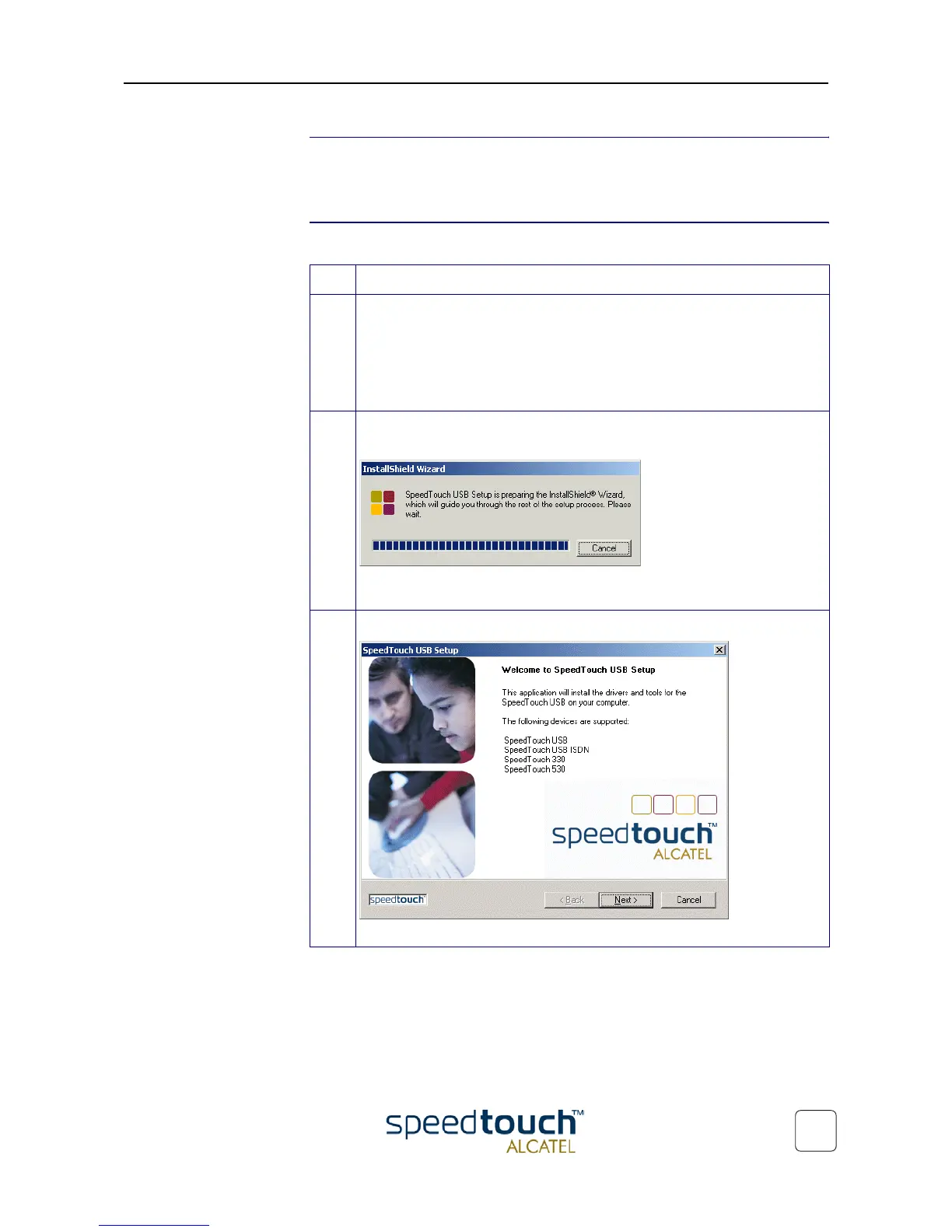 2 The STUSB Setup program prepares the SpeedTouch Setup wizard (applica-