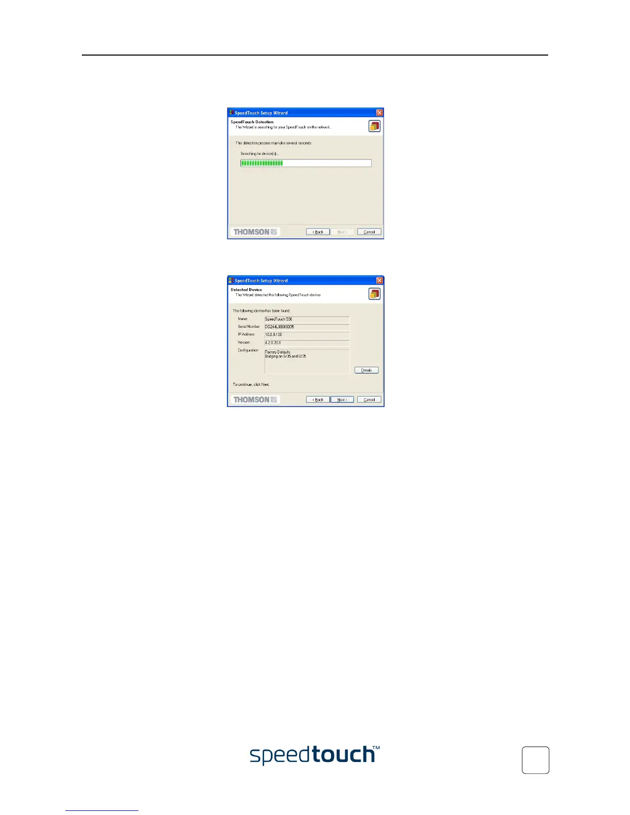 8 The Setup wizard should find your SpeedTouch™ device on the local network.