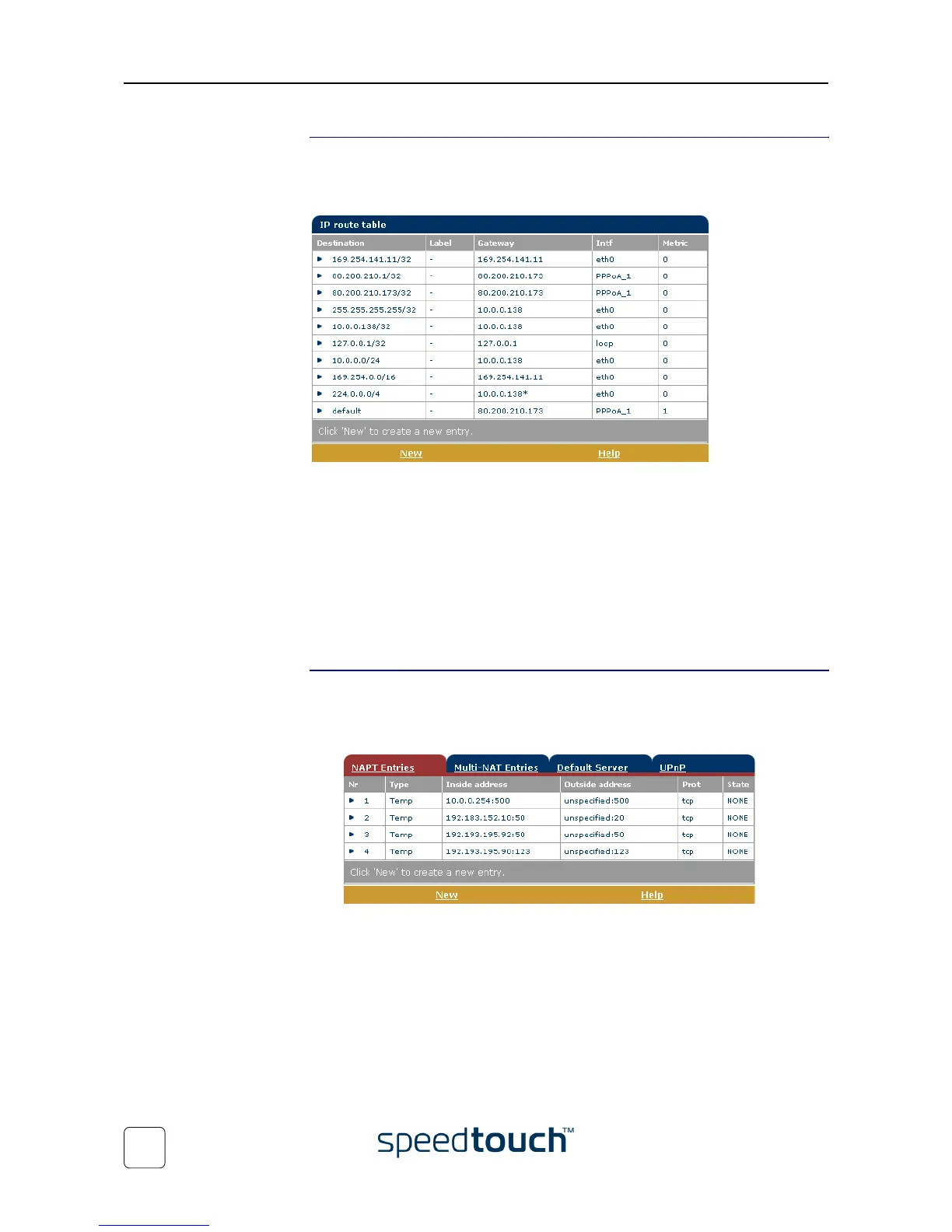 This page allows you to view or add/delete static IP routes for SpeedTouch™'s IP