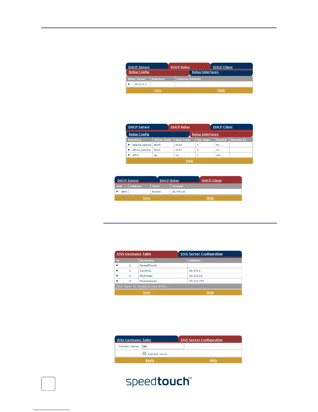 • Click the Relay Config tab to view the current SpeedTouch™ DHCP relay