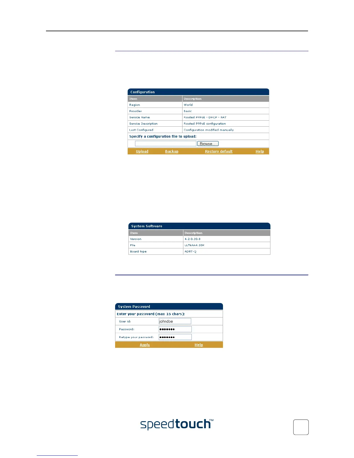 • Back up the current SpeedTouch™ configuration, restore the SpeedTouch™
