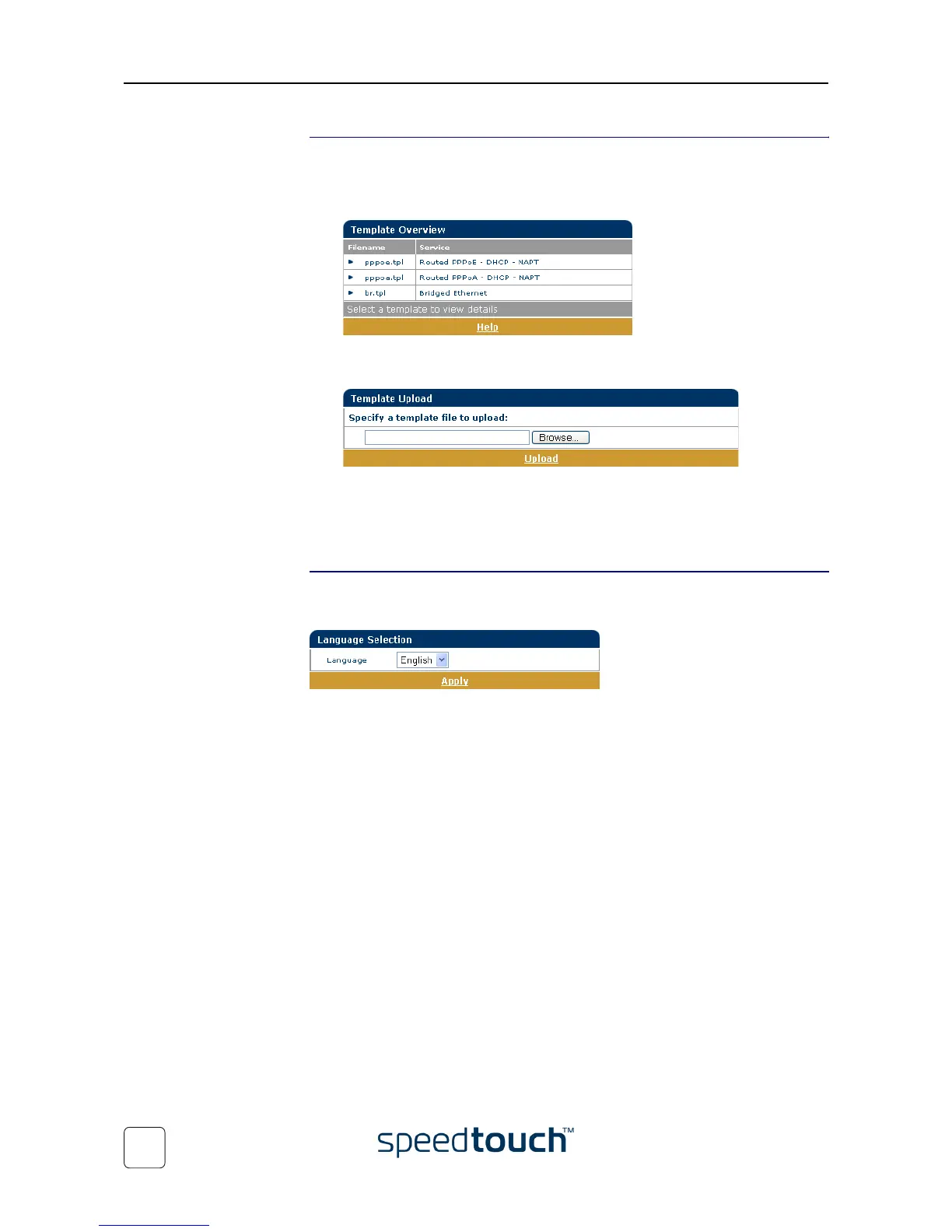 • Upload new template files, e.g. from the SpeedTouch™ Setup CD-ROM (usually