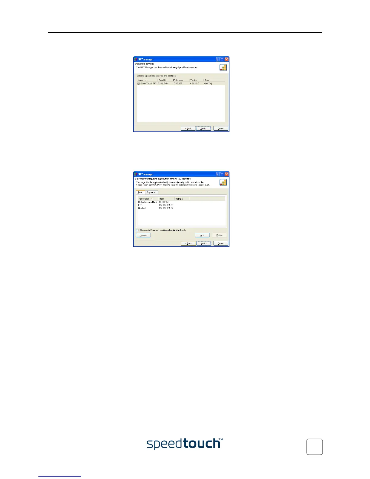 7 NAPT manager lists the SpeedTouch™ devices found on the network: