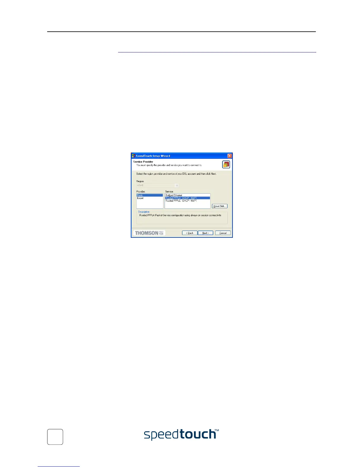SpeedTouch™ and your PC. Follow the instructions and enter the required infor-