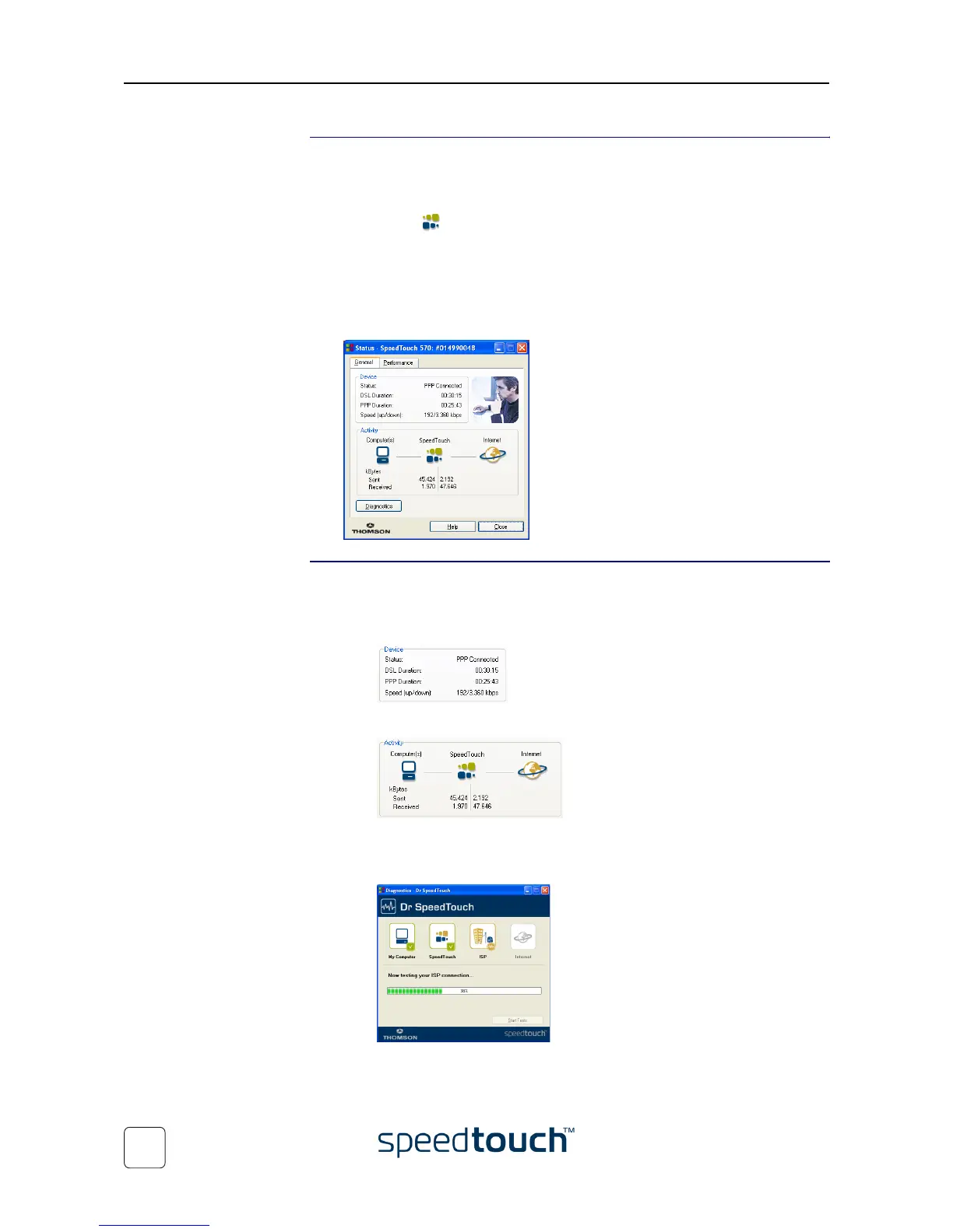 • View activity between your computer, the SpeedTouch™ and the Internet: