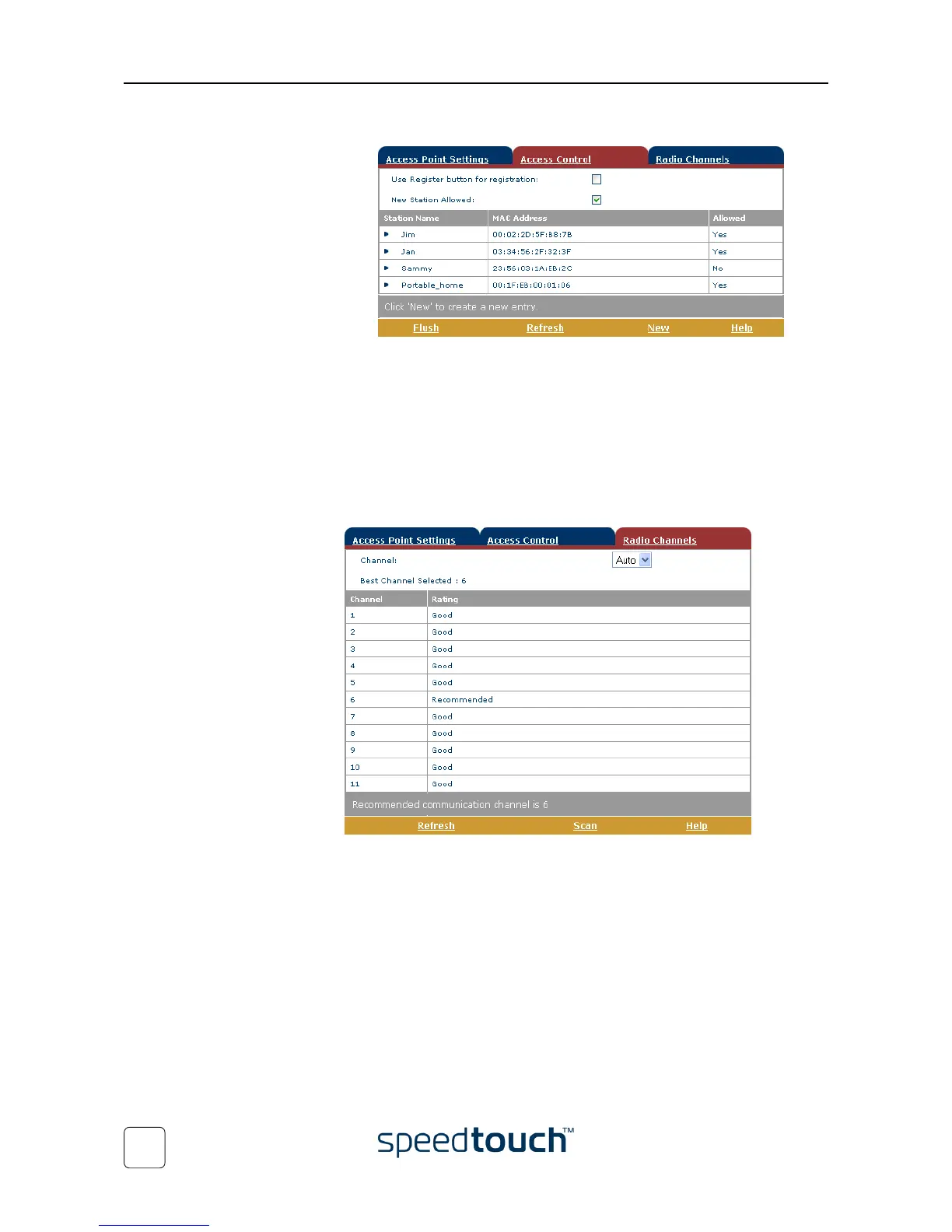 • Update the SpeedTouch™’s automatic channel selection, click Scan.