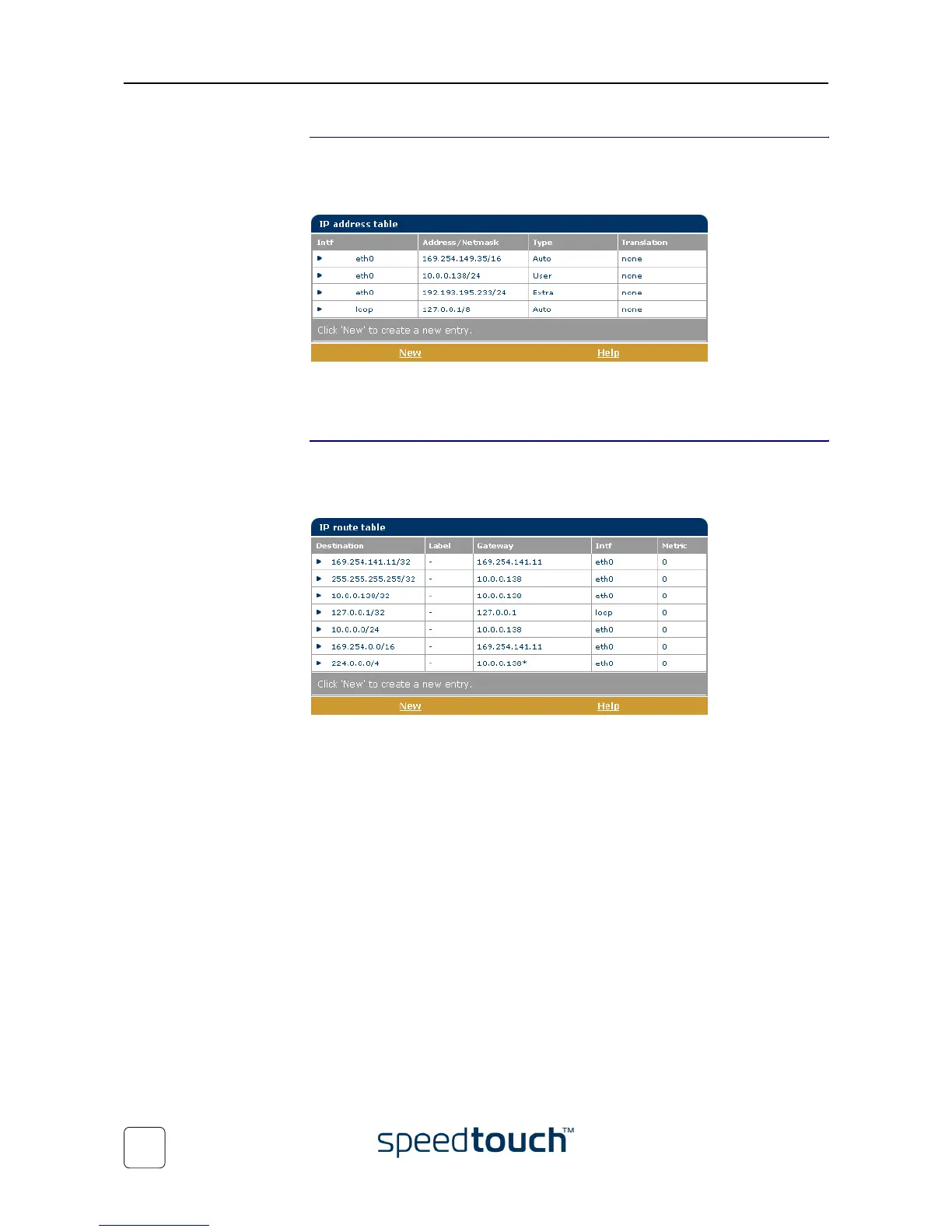 SpeedTouch™ IP routing table. The eth0 interface allows you to assign an IP address to