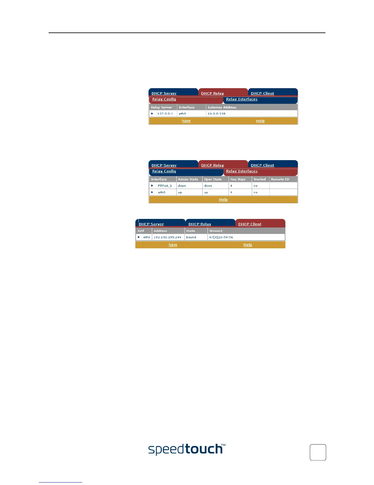 • Click the Relay Config tab to view the current SpeedTouch™ DHCP relay