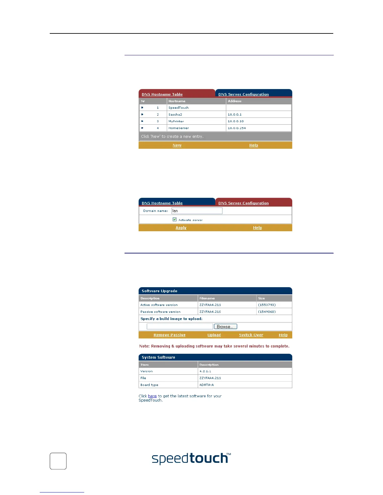 See “7.3 SpeedTouch™ System Software Upgrade” on page 77 for more informa-