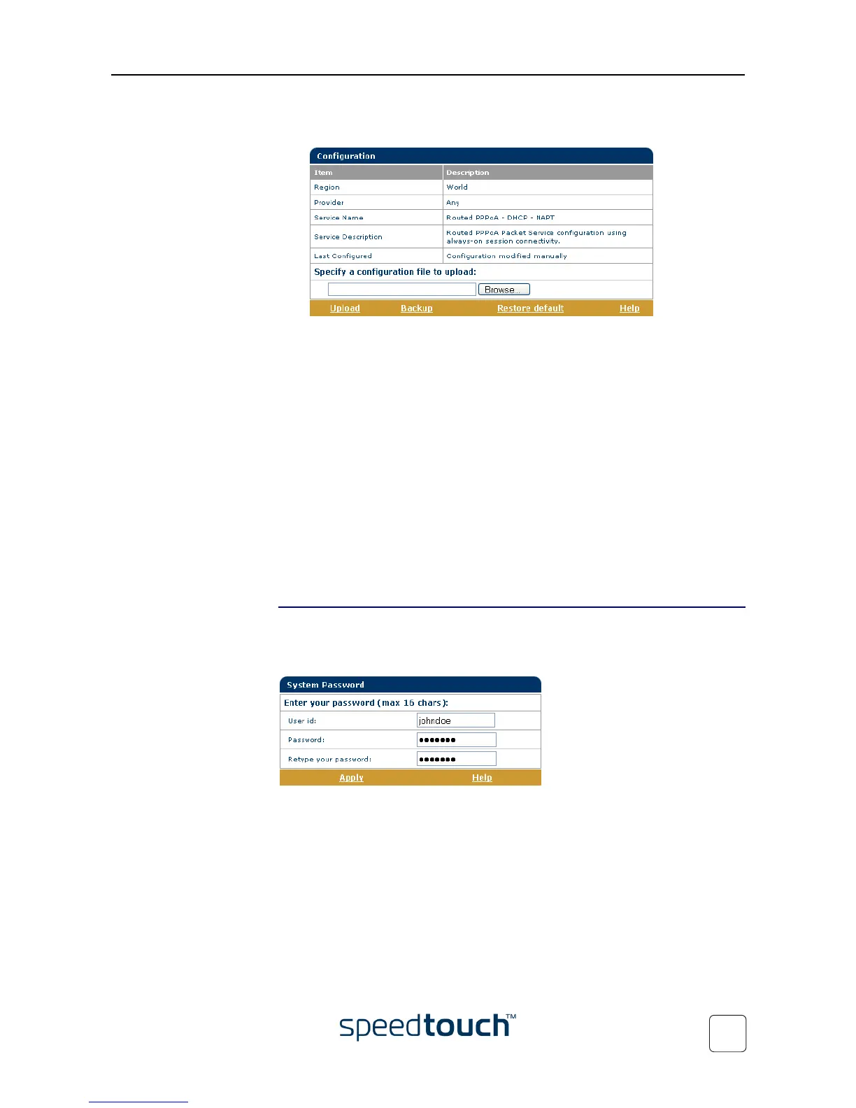 • Back up the current SpeedTouch™ configuration, restore the SpeedTouch™