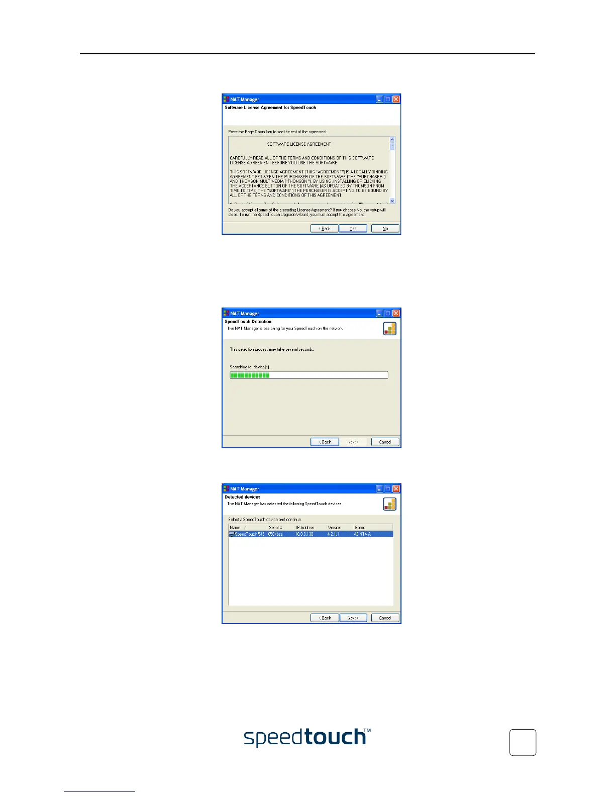 7 NAPT Manager will search for the SpeedTouch™ on the network.