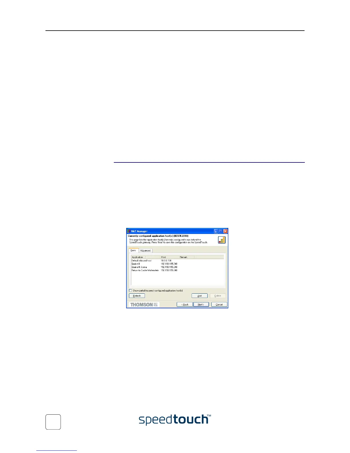 1 As soon as the NAPT Manager has detected your SpeedTouch™ device you can