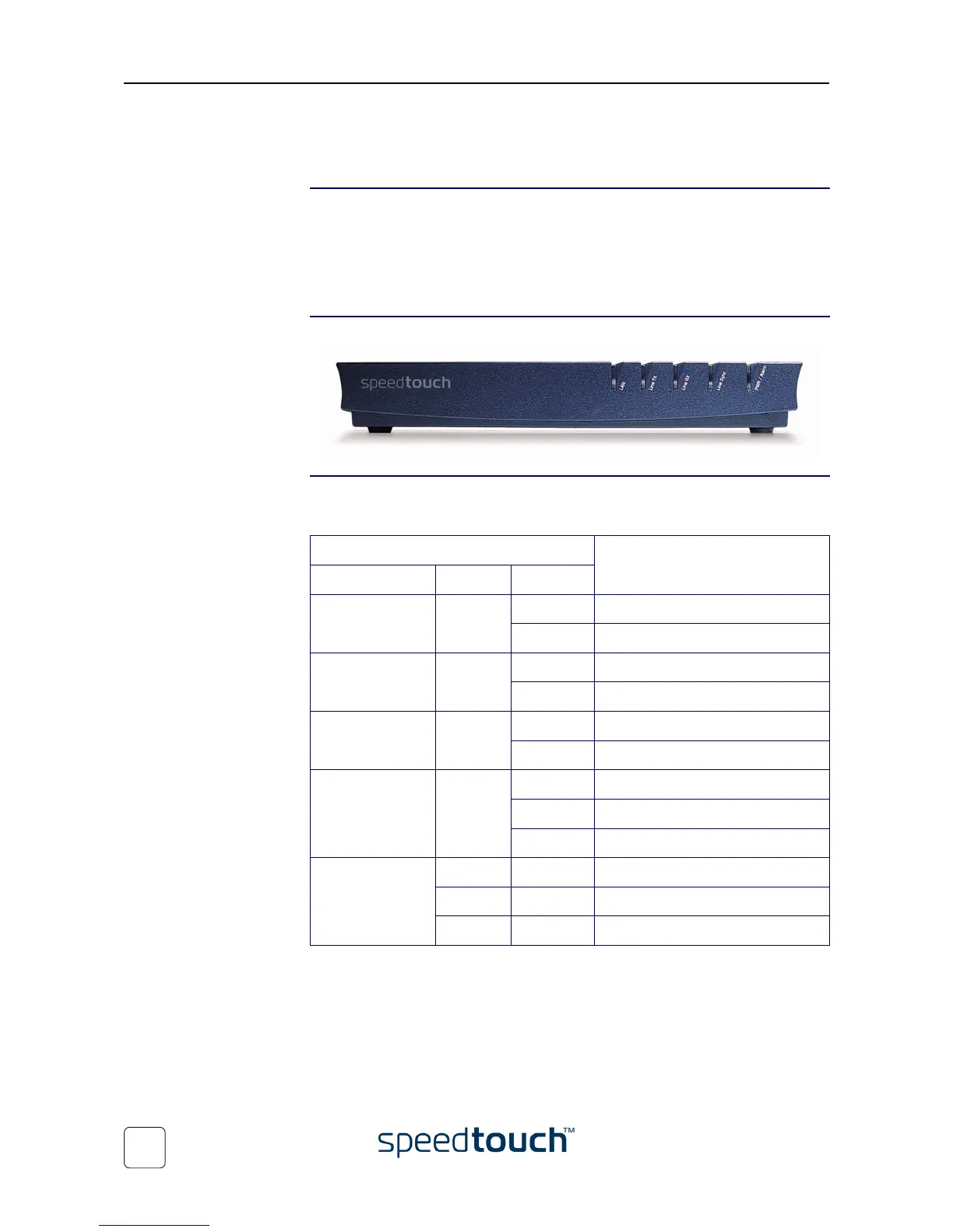 Front panel layout The SpeedTouch™ is presented in a desktop housing: