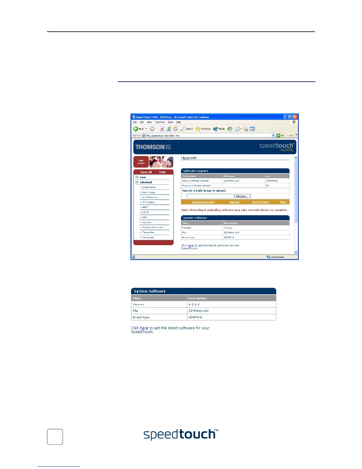 4 Click the link here to open the SpeedTouch™ System Software Upgrade Internet